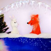 Спектакль играется на красочной ширме высотой 1 метр 60 см. Актеры полностью скрыты, поэтому дети воспринимают кукол как живых. По длине ширма устанавливается на 3 метра. В спектакле участвуют 8 тростевых кукол. Продолжительность кукольного спектакля - 45 минут. После кукольного спектакля родители могут сделать красивые фотографии на фоне зимних декораций. По желанию, артисты могут вручить детям подарки (заранее Вами приготовленные) и фотографируются на память.