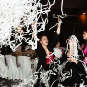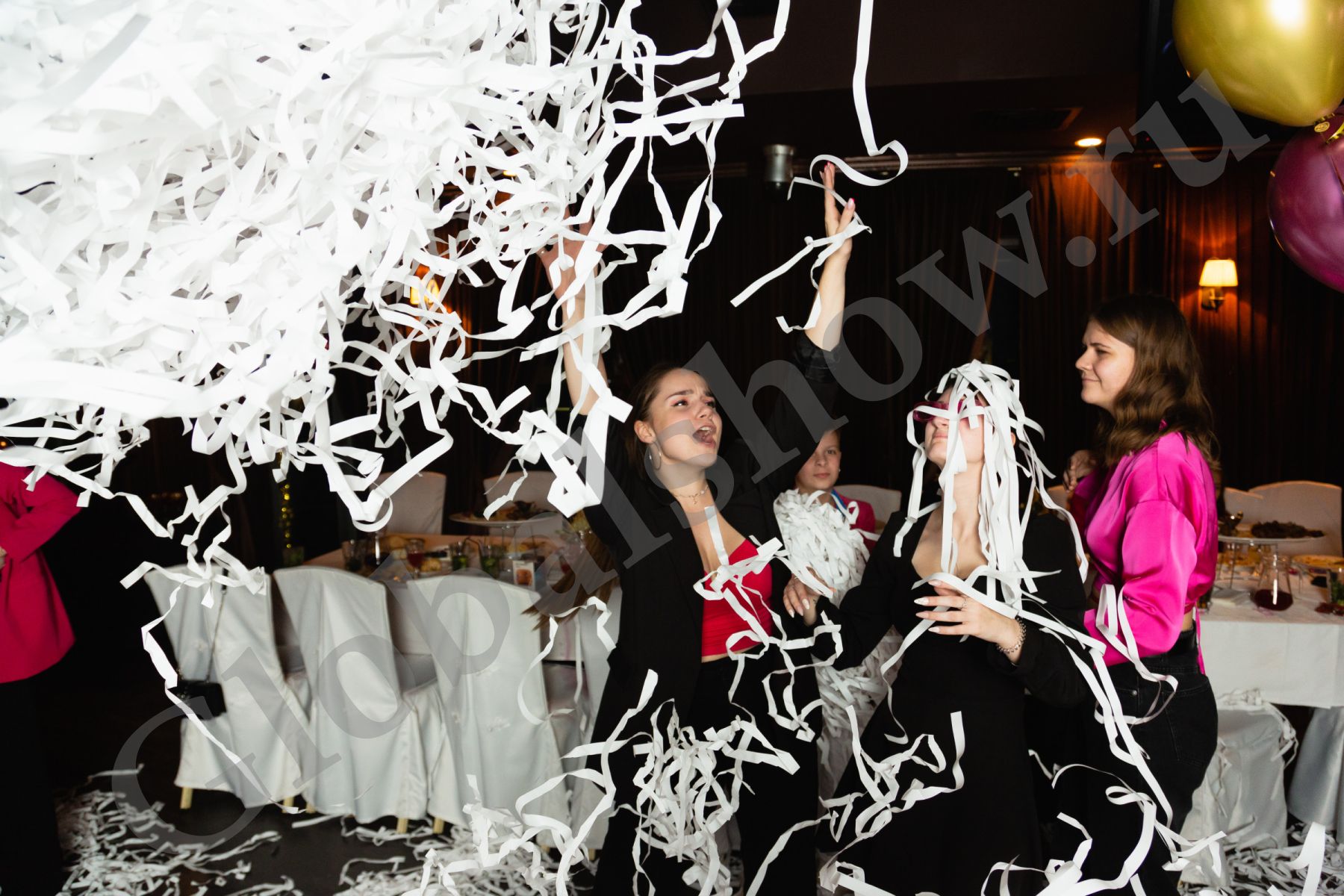 Буйство красок и цветов, вихри серпантина и звездные потоки конфетти — бумажное шоу обворожит вас своей креативностью и непосредственностью атмосферы. Это невероятный заряд энергии, который буквально валится на вас с потолка! Это груды бумажных нарезок, хрустящих снопов, в которых можно валяться и купаться, которыми можно бросаться, и под которыми можно танцевать и баловаться. Бумажное шоу проводится также с участием артистов, которые выступают с использованием бумажного реквизита, увлекают своей энергией и креативными выдумками. Это удивительные бумажные декорации и костюмы, в которых выступают заводные диджеи и пиджеи, приглашая к играм и конкурсам. Бумажное шоу — это интерактивное представление, которое лучше всего устраивать в середине празднества, когда нужно поднять тонус, чтобы проснулись новые силы для веселья и удовольствия. Красиво, стильно и невероятно радостно — бумажное шоу подарит вам массу восторга и впечатлений, которые вы наверняка захотите испытать еще раз. Не отказывайте себе в этом — заказывайте шоу на каждый праздник, и мы обязательно найдем чем вас удивить снова и снова.
